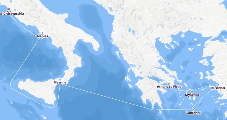 Itinerary: Rome Civitavecchia, Naples, Messine, Fun day at sea, Santorini, Kusadasi, Mykonos, Athens Le Piree