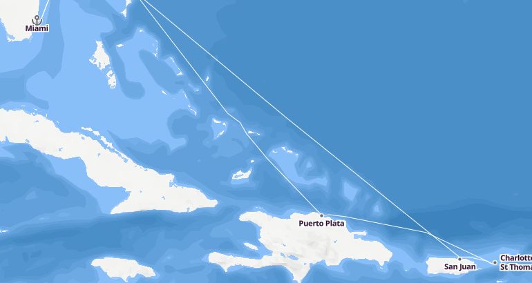 Itinerary: Miami, Fun day at sea, Fun day at sea, San Juan, Charlotte Amalie St Thomas, Puerto Plata, Fun day at sea, Miami