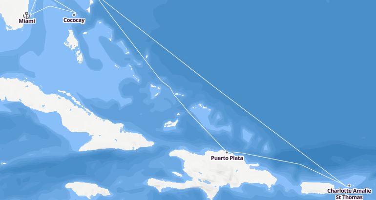 Itinerary: Miami, Cococay, Fun day at sea, Fun day at sea, Charlotte Amalie St Thomas, Puerto Plata, Fun day at sea, Miami