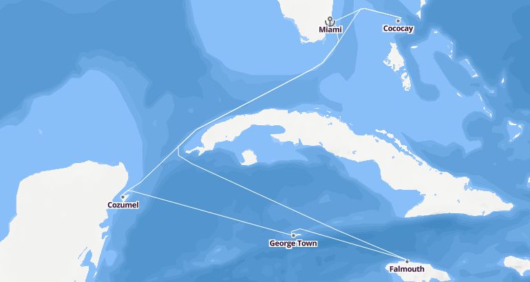 Itinerary: Miami, Fun day at sea, Cozumel, George Town, Falmouth, Fun day at sea, Cococay, Miami
