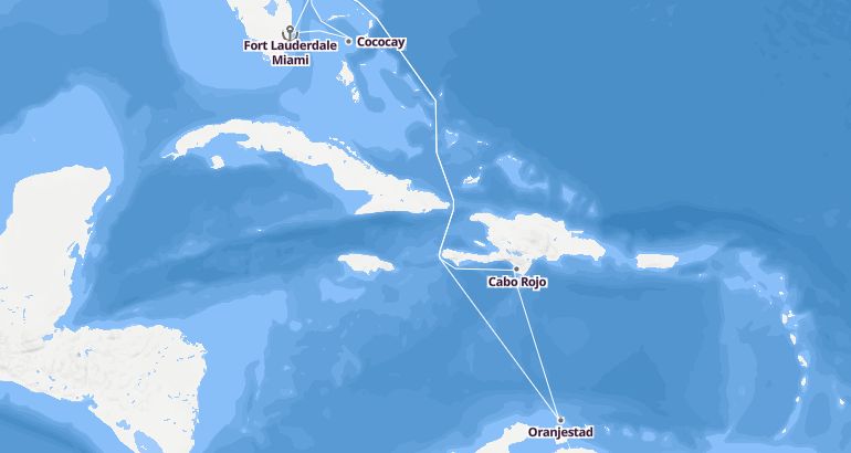 Itinerary: Fort Lauderdale Miami, Fun day at sea, Fun day at sea, Oranjestad, Oranjestad, Cabo Rojo, Fun day at sea, Cococay, Fort Lauderdale Miami