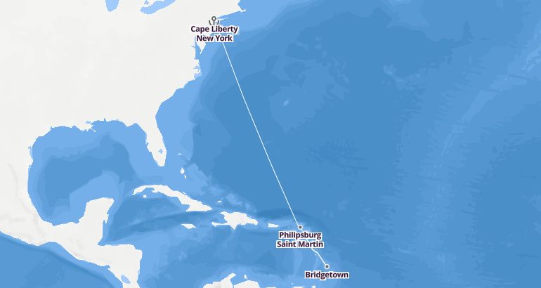 Itinerary: Cape Liberty New York, Fun day at sea, Fun day at sea, Fun day at sea, Philipsburg Saint Martin, Bridgetown, Basseterre, Fun day at sea, Fun day at sea, Fun day at sea, Cape Liberty New York