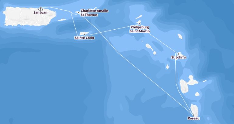 Itinerary: San Juan, Charlotte Amalie St Thomas, Roseau, St. John's, Philipsburg Saint Martin, Sainte Croix, Fun day at sea, San Juan