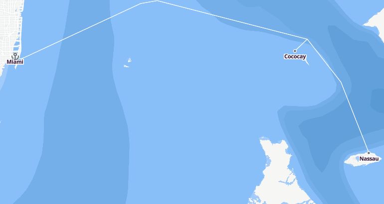 See the routeItinerary: Miami, Nassau, Cococay, Fun day at sea, Miami